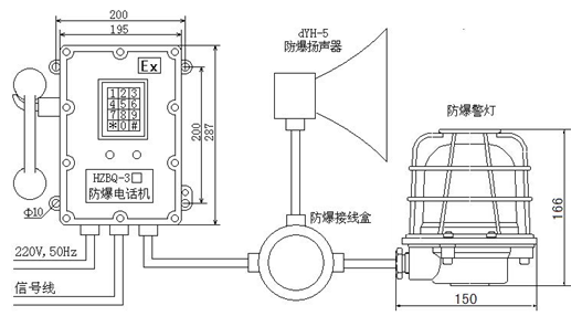 4.防爆標(biāo)志:ExdibⅡBT6 Gb(防爆電話機(jī));ExdⅡBT6 Gb(防爆揚(yáng)聲器)